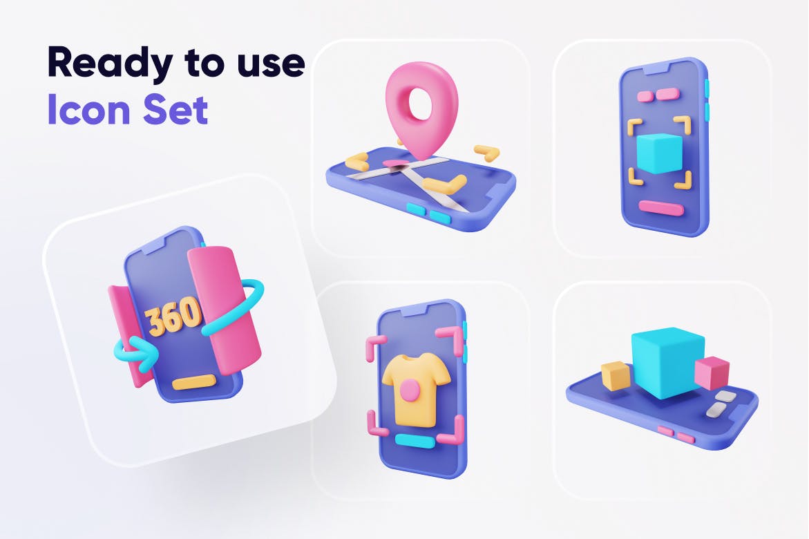 定制3D图标,适合任何移动设计需求。