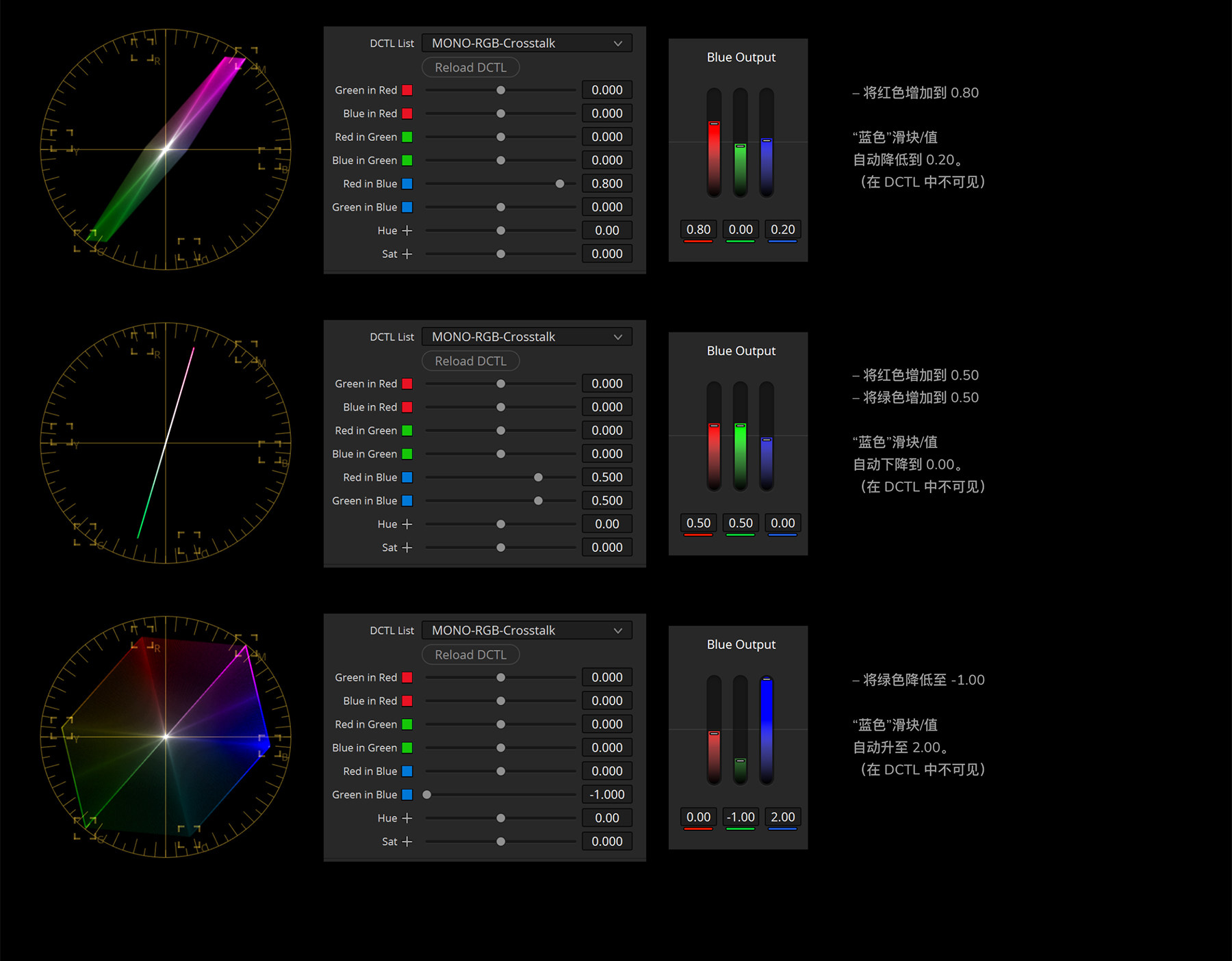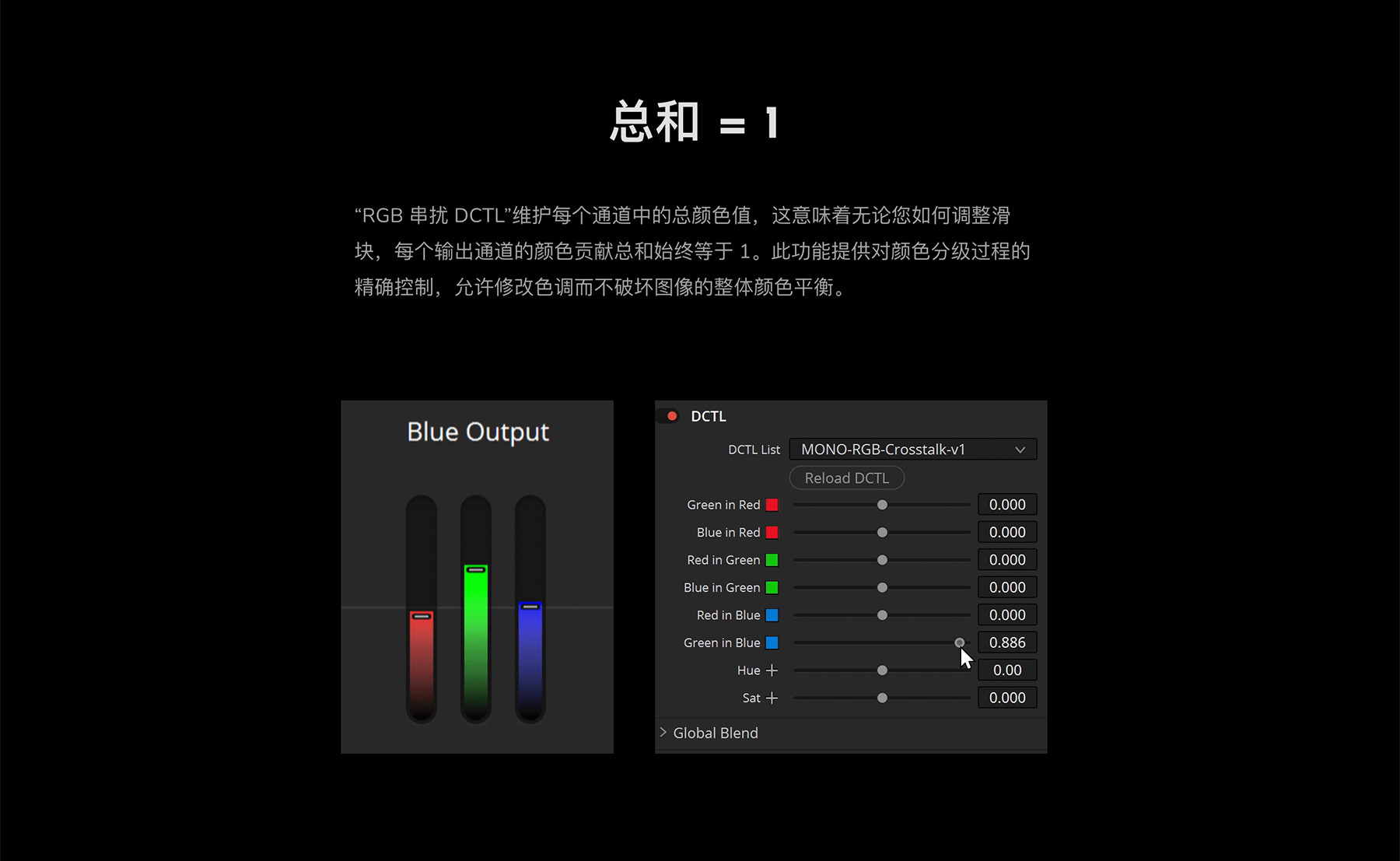 该DCTL通过改进达芬奇软件自带的 RGB Mixer,实现更直观、可预测的红绿蓝通道混合控制。