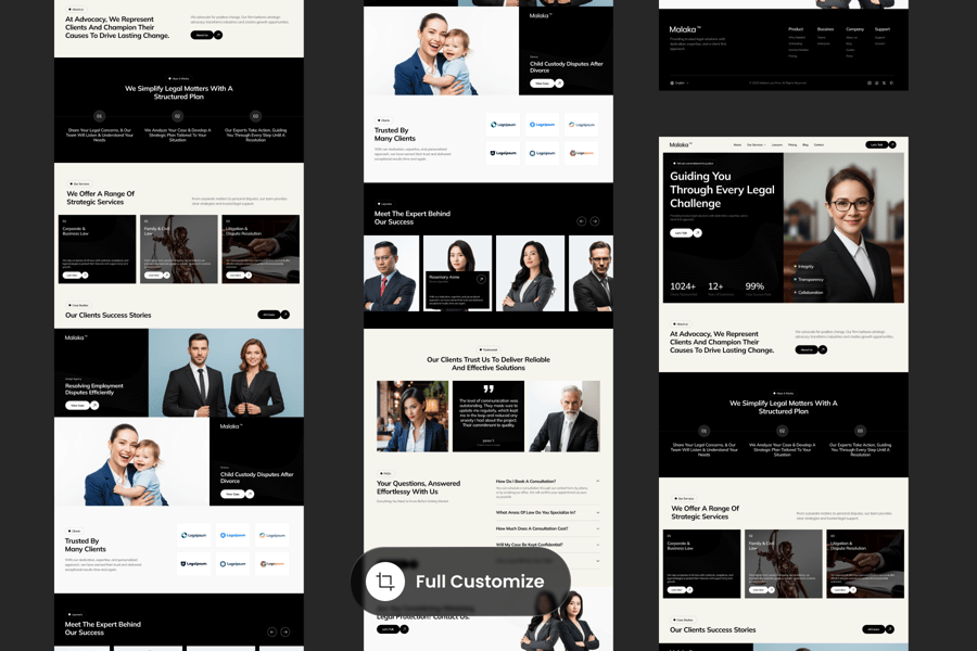 Malaka 是一款专业优雅的落地页模板,专为律师事务所、法律顾问和公司律师设计。